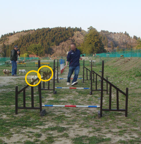 ↑写真はハードルを跳ばせようと必死にあおる父に対して、ハードルの脇を疾走するひかりちゃんとジャスちゃん。(足がインサイドキック気味ですが、決してサッカーをしてる訳じゃありません。)