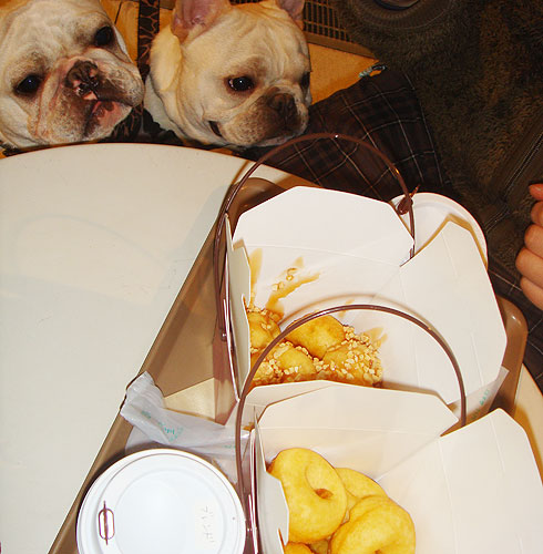 2ブヒを散歩させながら、荷物を持ち歩くのは結構大変なので、ウン○だけでも自分で持ちなさいってことで・・・。