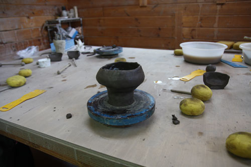 以前電動ろくろで作ったことがあるので、今回は手びねりに挑戦!