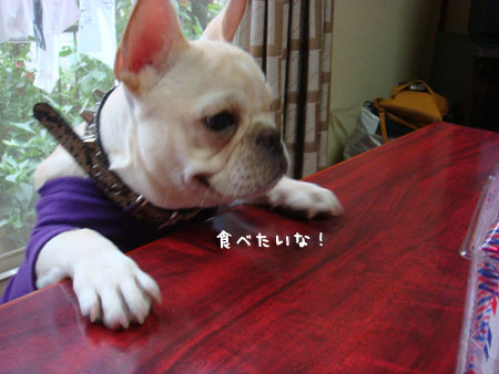 家に着くとすぐに、机の上に置いてあった栗に飛びつくニコ!