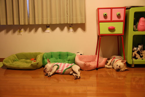気付くと2ブヒともベットから落ちて床に直で寝てます。