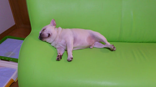 いびきをガーガーかきながらソファーで就寝中