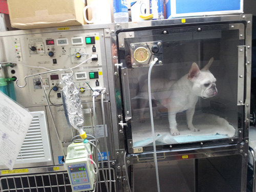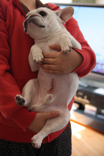 手術後当日はフセしたまま、ガクガクと震えていました。