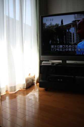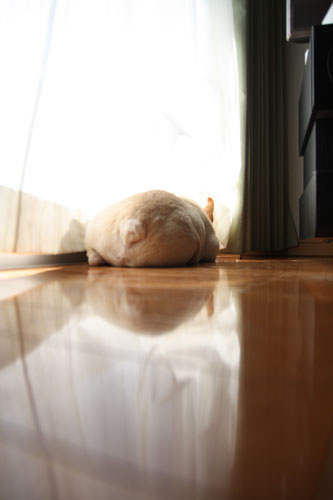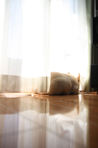 そのな時は決まってカーテンの内側の陽が当たるところを陣取り、気持ちよさそうに日向ぼっこするのがルーティーンとなっているニコ氏。
