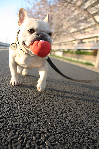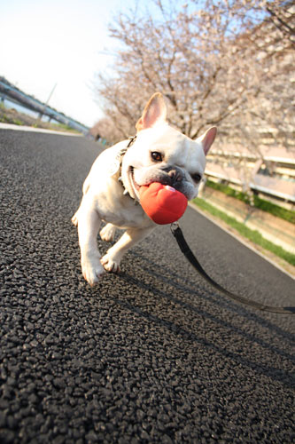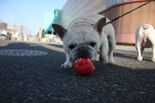 普段、つぶれた鼻よりも前に出ることのない前足を懸命に伸ばして、必死におもちゃを取ろうとする姿に飼い主ながら萌えてしまいました。