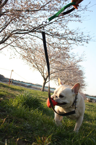 大きな怪我や病気もなく元気に5歳を迎えられたことに感謝しつつ、天気もよかったので桜のきれいな川沿いを散歩に行ってきました。