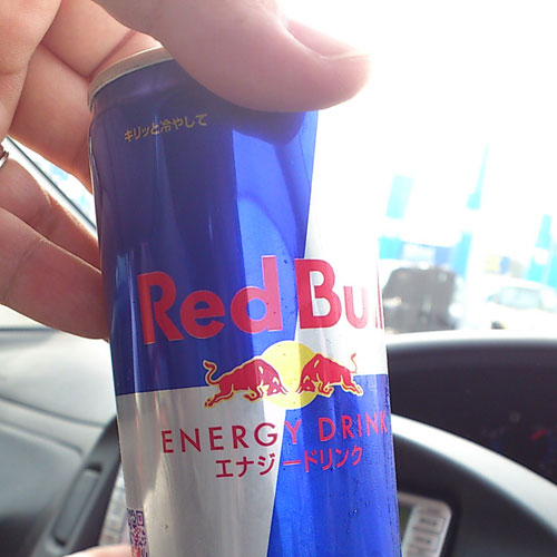 運転を始めるとすぐ眠くなるたちなので、いざという時は頼れる「レッドブル」を持参!