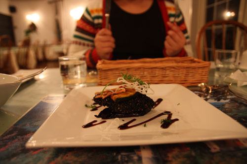 この方が、ドイツ人オーナーのWalterさん。めちゃめちゃ陽気なこのドイツ人オーナーは、モーツアルトのBGMに合わせて頼んでもいないのにこのかぶり物で登場。実に愉快で素敵な方でした。