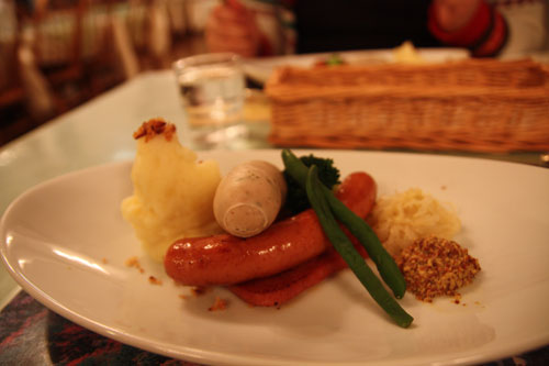 メインは、ソーセージ2本・ハム・マッシュポテト・ザワークラウトと伝統的なドイツ料理が並びます。ボリューム満点で美味しい!!20年前を思い出す素敵な料理に感動しました。