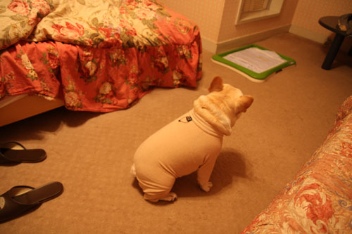 朝食は8:30〜。ニコひかも食堂まで一緒。ひかりちゃんが首を長くして朝食が運ばれてくるのを待ちます。(実際は犬の朝食はありません)