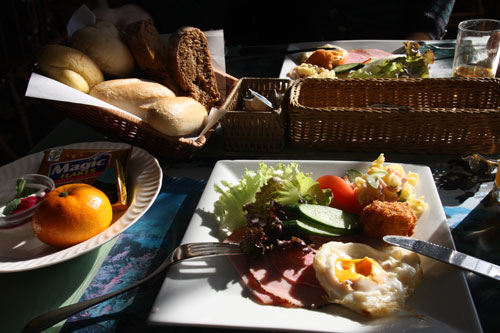 ご覧の通り洋風の朝食!ハート型の目玉焼きに愛情を感じます。