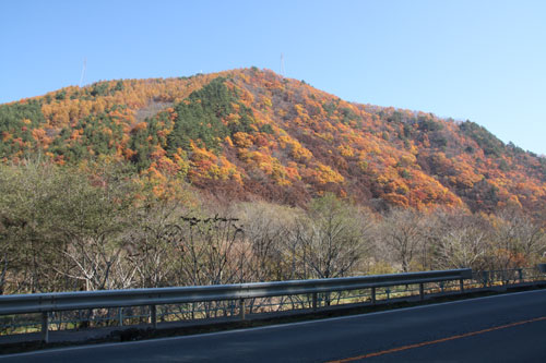 この時期は、丁度紅葉が最盛期を迎え赤や黄色に色づく山々の自然がとてもキレイ。