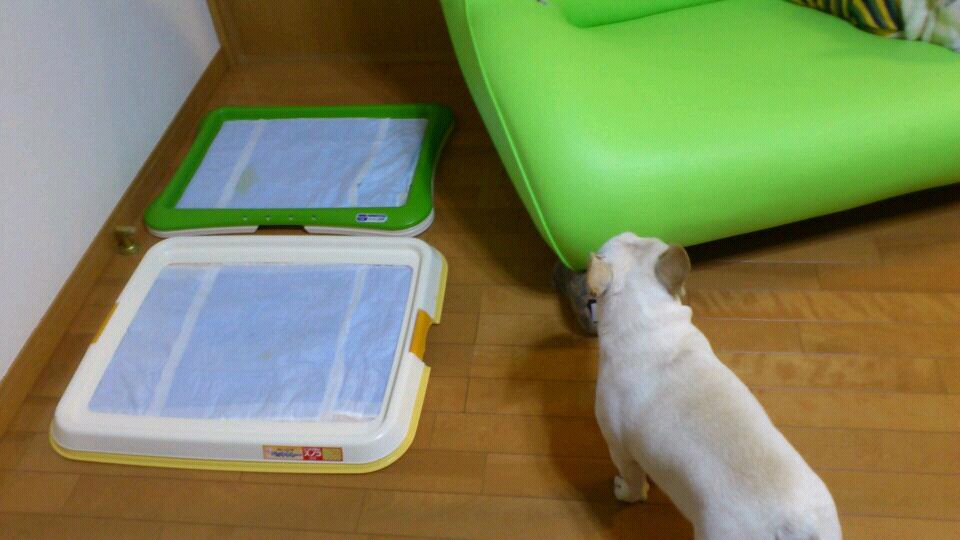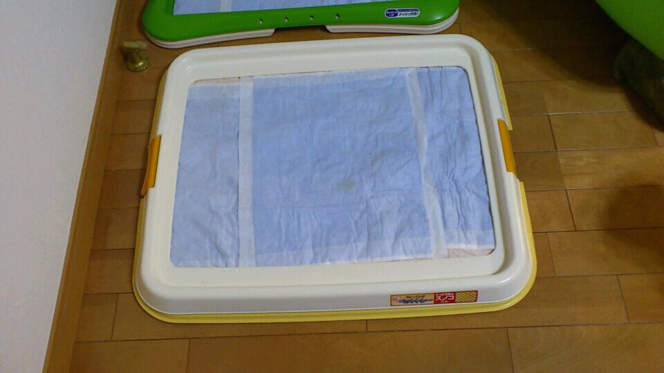 大きめのトイレシートを毎回オシッコするたびに代えていたのでは、あまり経済的でなく、環境にも優しくないということで、小サイズのトイレシートを2枚ひいては使ってみたところ、なかなかの効果を得ました。