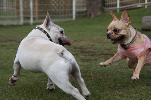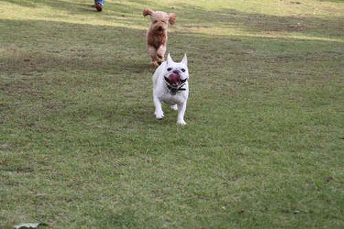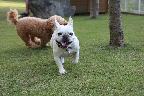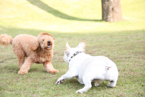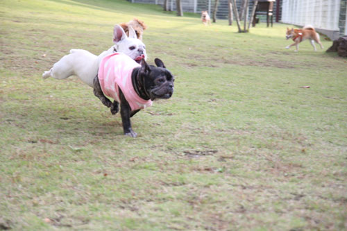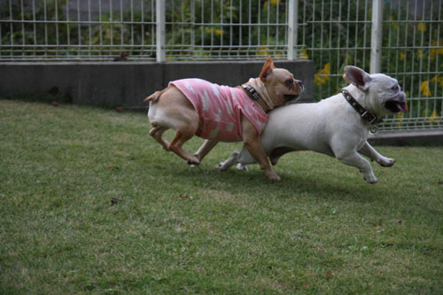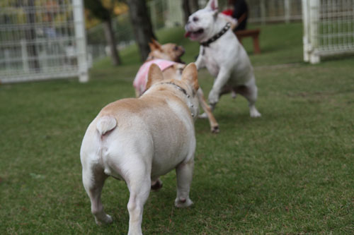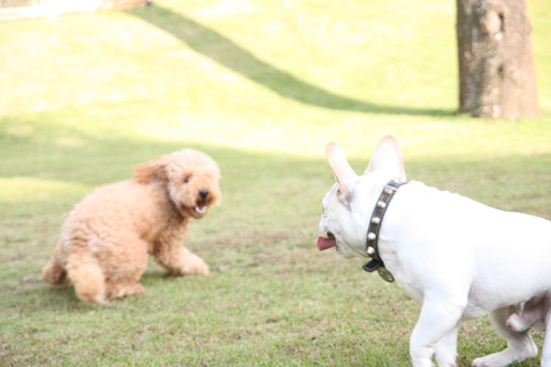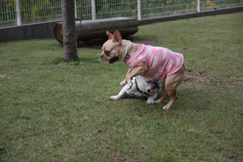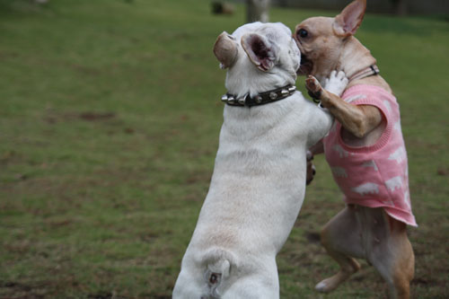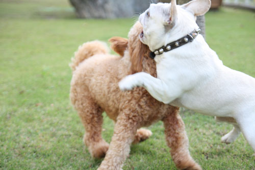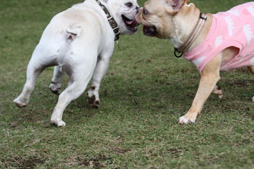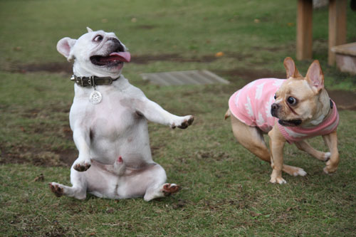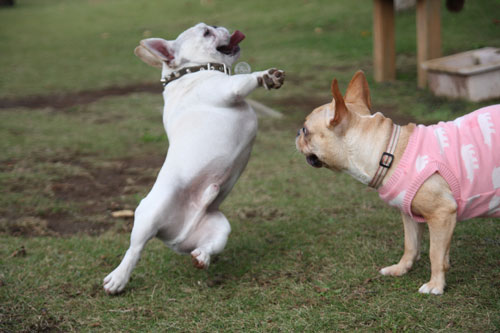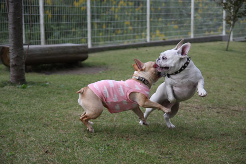 フレンチブルドッグと戯れること