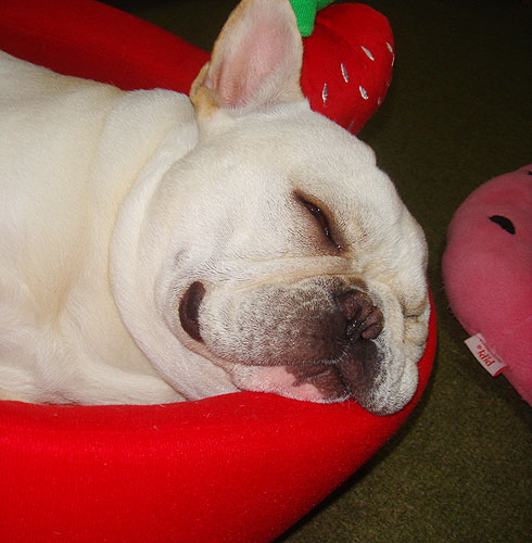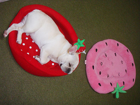 ニコ氏の旧いちごちゃんで寝ている写真をアップしました。
