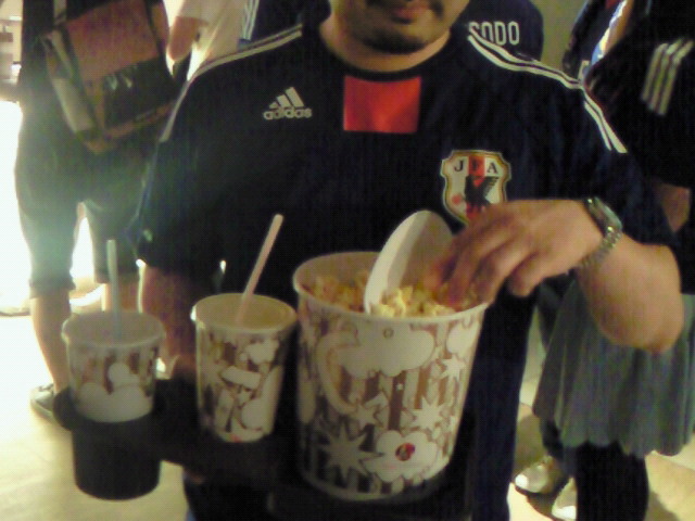 映画館での観戦なので、夜中なのにポップコーンをお供に・・・。