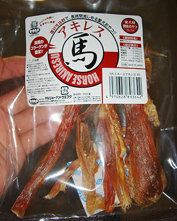 その名も『馬アキレス』。名前の通り馬のアキレス腱をカミカミするおやつ!