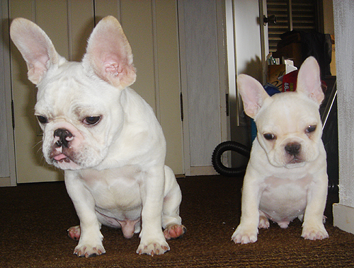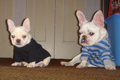 フレンチブルドックのニコ(左)とひかり(右)です。