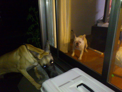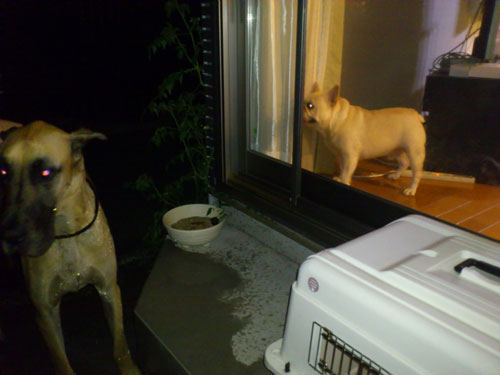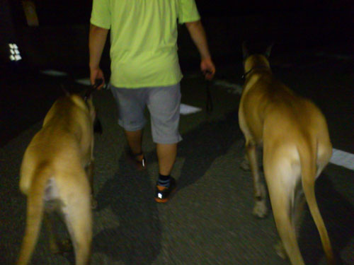 昨晩駅から帰宅する途中友人宅の前を通りがかると、エースと金之助(共にグレートデン)が、外で散歩に行く準備をしていたので途中までご一緒することに!!