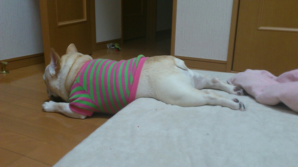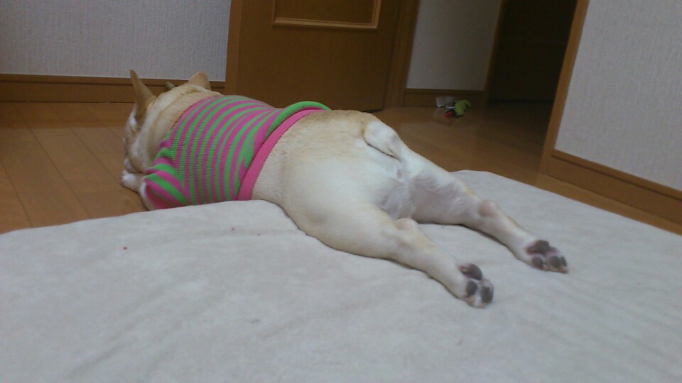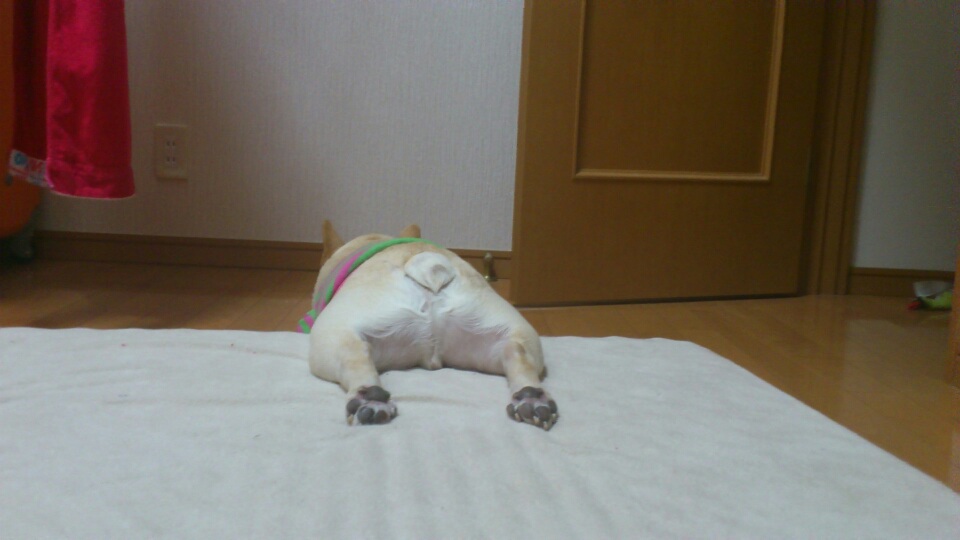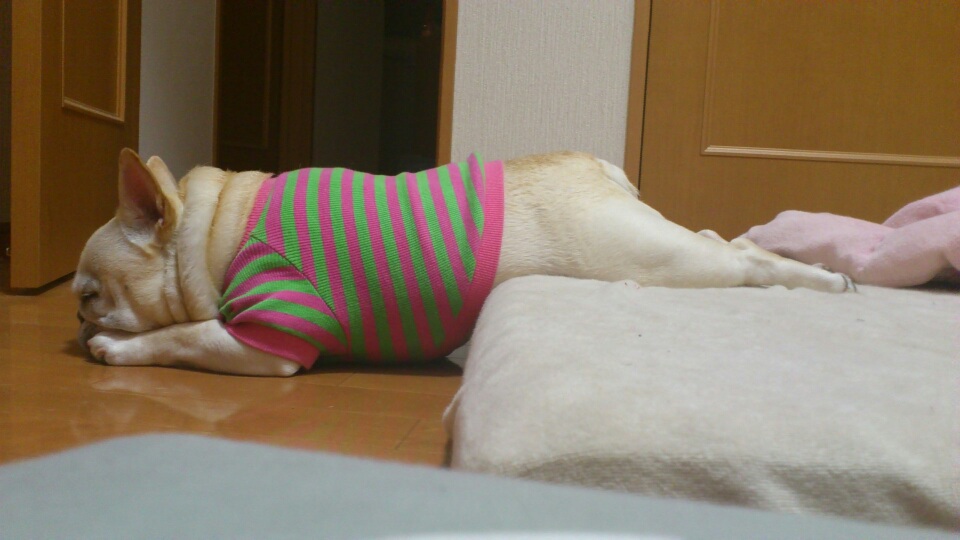 なんでこんな体勢で寝ていたのかわかりませんが、暑かったから!?