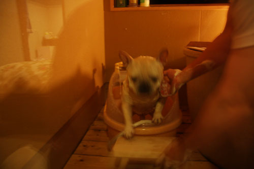 お風呂上がり定番の興奮状態。なぜかお風呂から出ると興奮して暴れます。