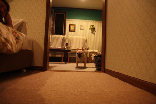 フレンチブルドッグとしての本能がそうさせるのか、よく布団やソファーなどを掘りまくります!この日も干し終わった布団を部屋に置いておくと、その上に乗ってほじくり返していました...、