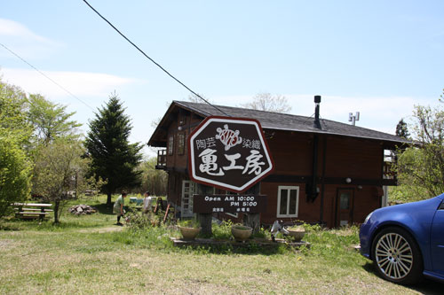 宿からは車で15分程度で目的地である「陶芸・染織 亀工房 」さんに到着!