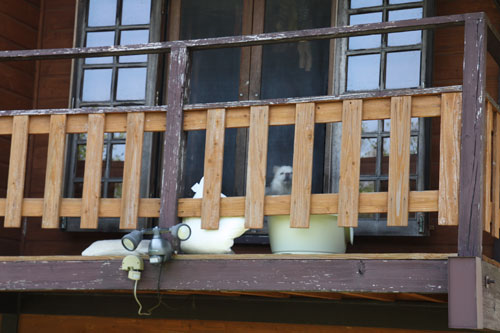 看板犬(すいません。名前は不明です。)も2階からお出迎え。