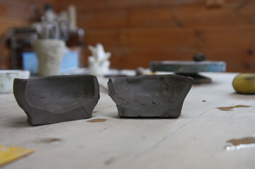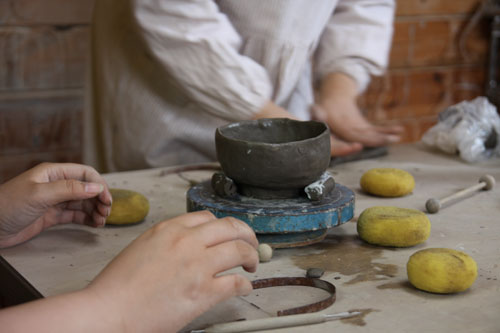以前電動ろくろで作ったことがあるので、今回は手びねりに挑戦!