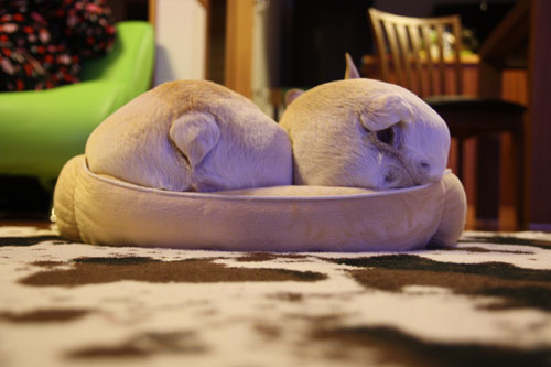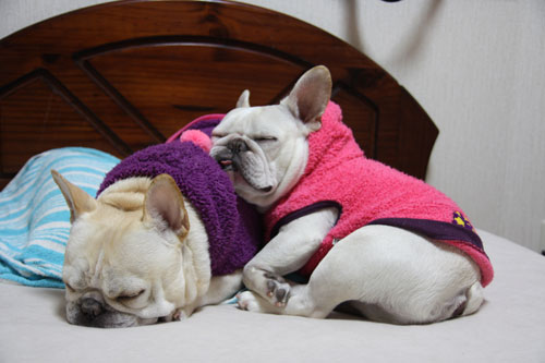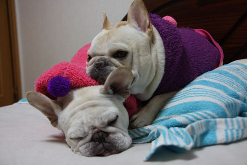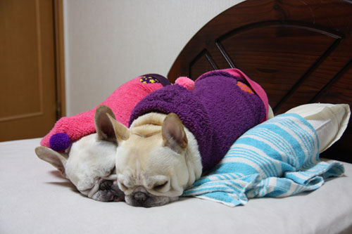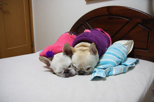 そんなこともあって、布団を撤収したところ、寒い部屋の中2ブヒで寄り添って寝てしまいました。