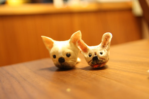 少し前になりますが、父も粘土細工にトライしてみました。(左:ニコ 右:ひかり)