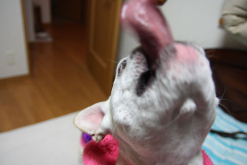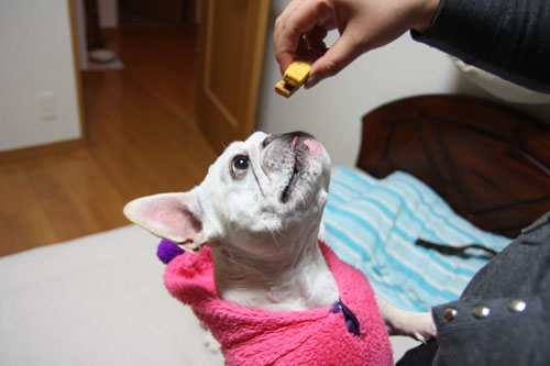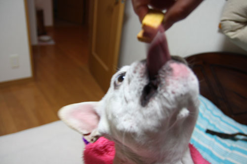 犬なのに手(前足)を使って、取ろうとしてました!