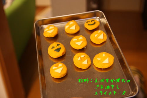 ハロウィンということでニコとひかりにカボチャのお菓子を作ってみようということになりました。