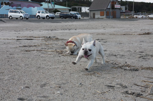 海は嫌いでも砂浜は大好きなようで気付くとテンション↑