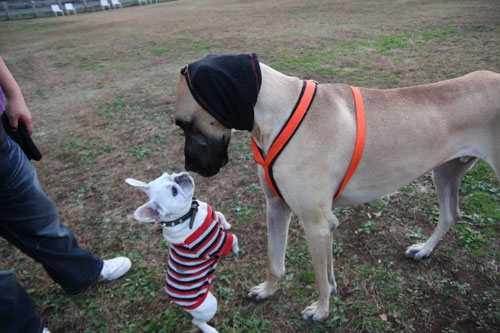 最近ニコ氏の大型犬嫌いが爆発して、隣のゾーンに入れると手当たり次第ケンカを売るので…。