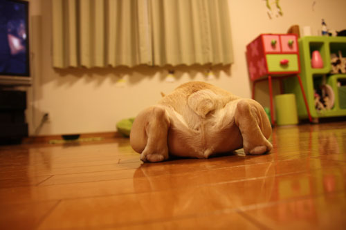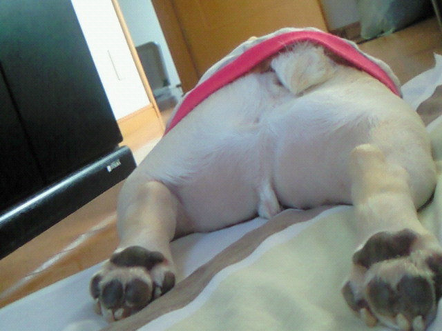 いつものようにうつ伏せになってお休み中のニコ氏でしたが、