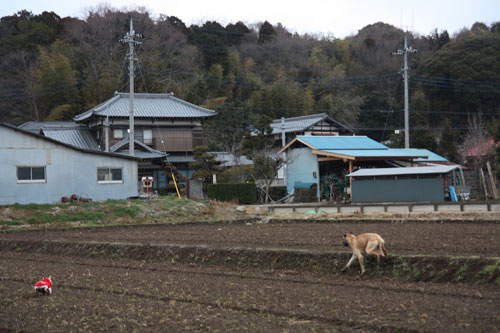 ひかりちゃんが巻き上げた砂埃に目がくらむニコ氏