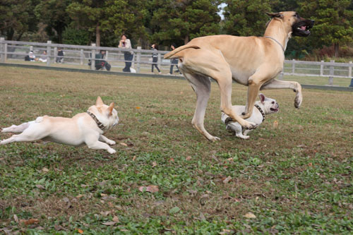 フレンチブルドッグと戯れること