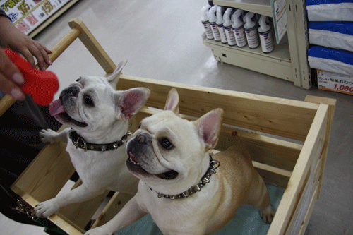 普段は、車に2ブヒを残して飼い主だけで買い物しますが、