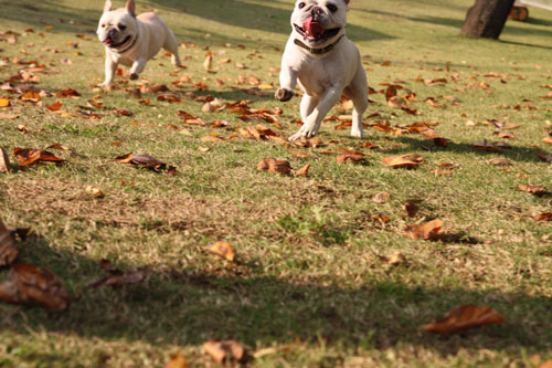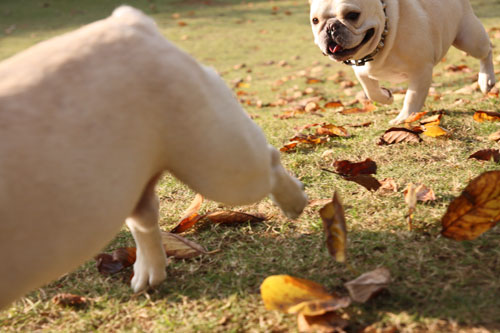フレンチブルドッグと戯れること