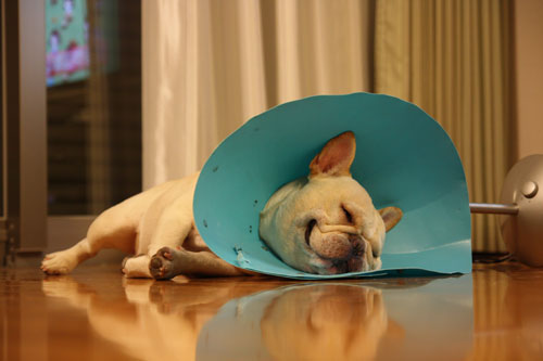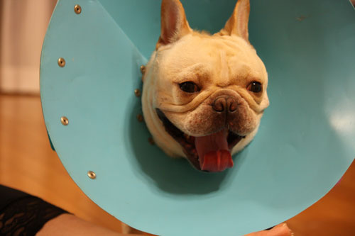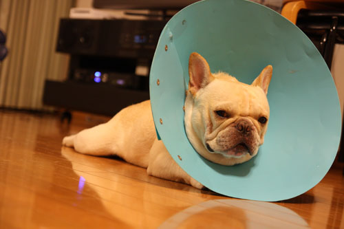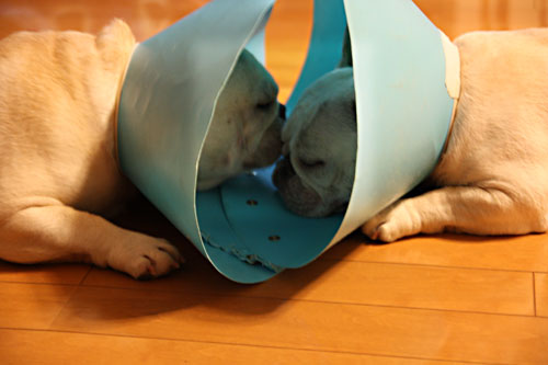 病院の先生からは、術後1週間はお互いの手術箇所をなめてしまったりするのを避けるためにカラーを着用するように言われました。