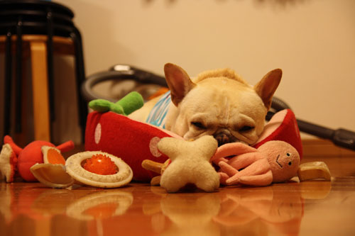 フレンチブルドッグと戯れること