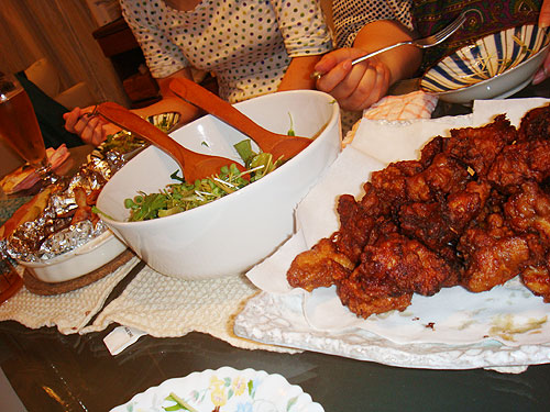 ハナママさんの手料理。(腕はプロ級) から揚げやらサラダやらパスタやら、とにかく美味しかったです。