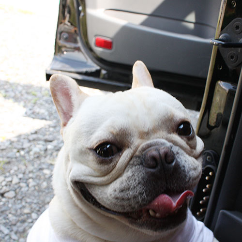 とにかくお出掛け大好きなニコ氏。車のドアを開けるとこの笑顔で、飛び乗ってきます。