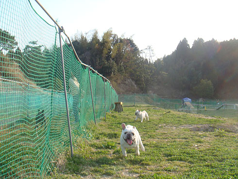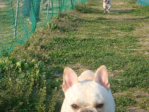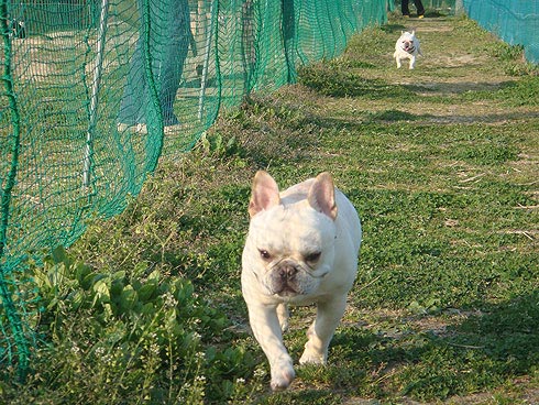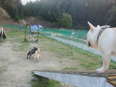 こちらはアジリティー広場。色々な遊具があり2ブヒにとってははじめての体験!