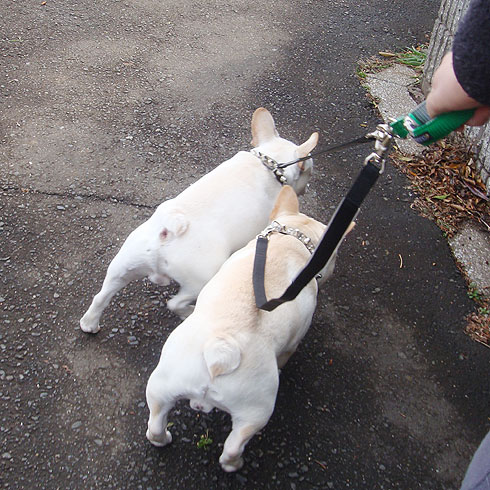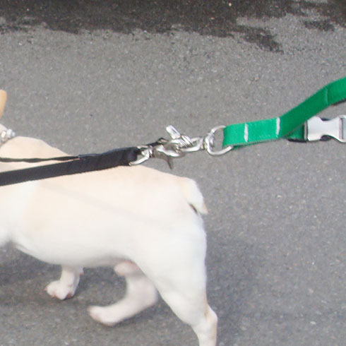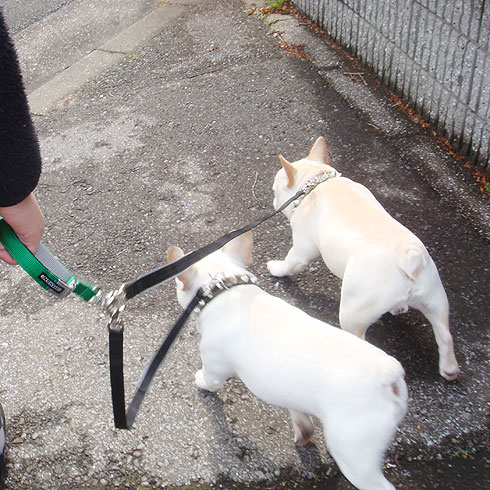 以前パトンちゃんとダン君のブログで紹介していた、ハフマンの2頭引きリードを真似して購入してみました。