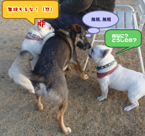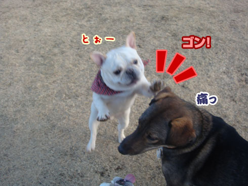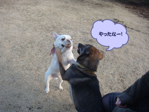 心配になって辺りを見渡すと、ランに来ていた他のわんちゃんと ケンカ に!