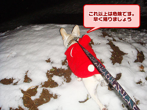 初雪にどんなリアクションをするか期待しながら、いざ出発!
