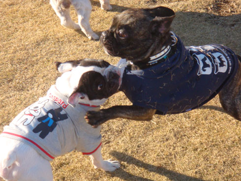 フレンチブルドッグ同士ってお互いをわかるのか、不思議と1箇所に集まってくるんですよね。