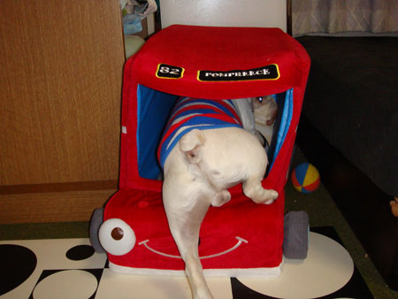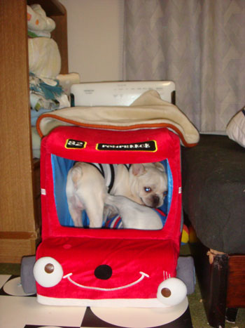 その後、イオンのペットシティーでバス型の犬小屋のようなもの!?を購入。
